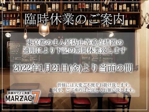 東京都のまん延防止措置の適用により、下記の期間休業致します。